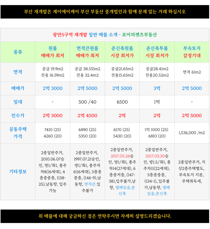 광안5구역 재개발 : 현재 가능한 소액 매물 업데이트 해 드리겠습니다.