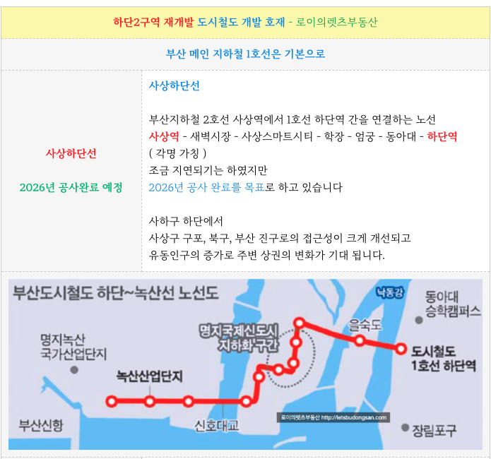 4. 도시철도 개발호재 정리 : 하단2구역 재개발 :