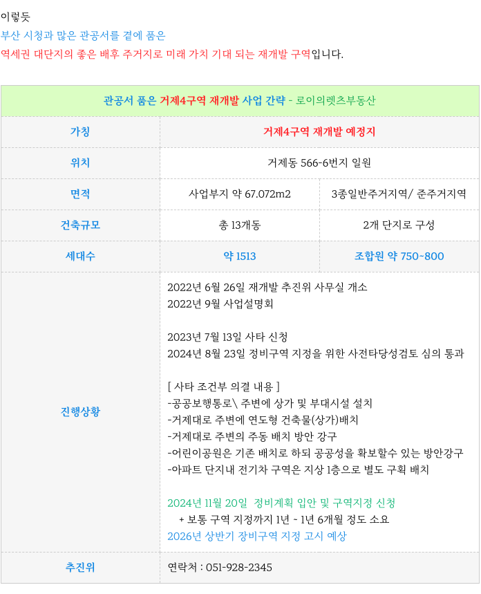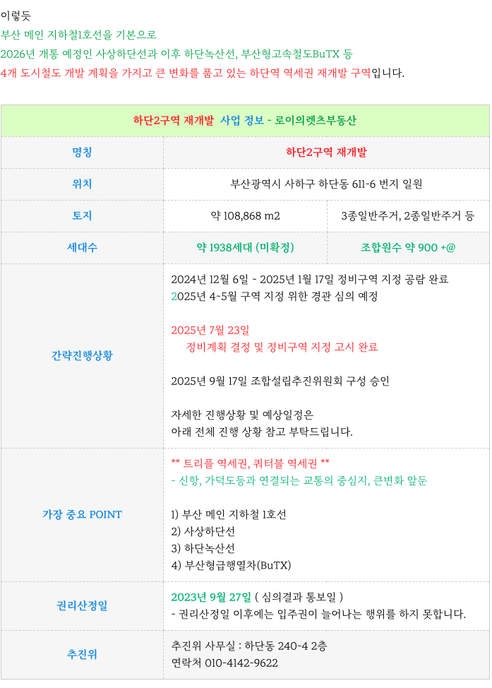 부산 전역 재개발에 대해 궁금하신 사항은 방문 또는 연락주시면 자세히 설명 드리겠습니다.