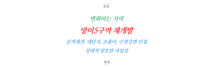 4. 망미5구역 재개발 : 사업 주요 특징 :