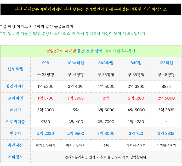 범일2구역 재개발 : 타입별 매물 소개해 드리겠습니다.
