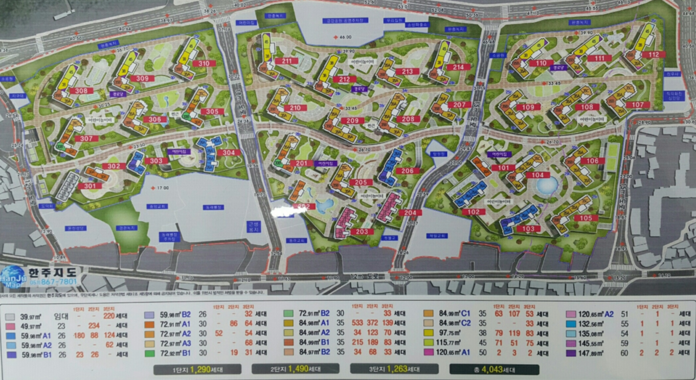 온천4구역은 3개의 단지, 1단지 1290, 2단지 1490, 3단지 1263 세대로 구성이 되어 있고