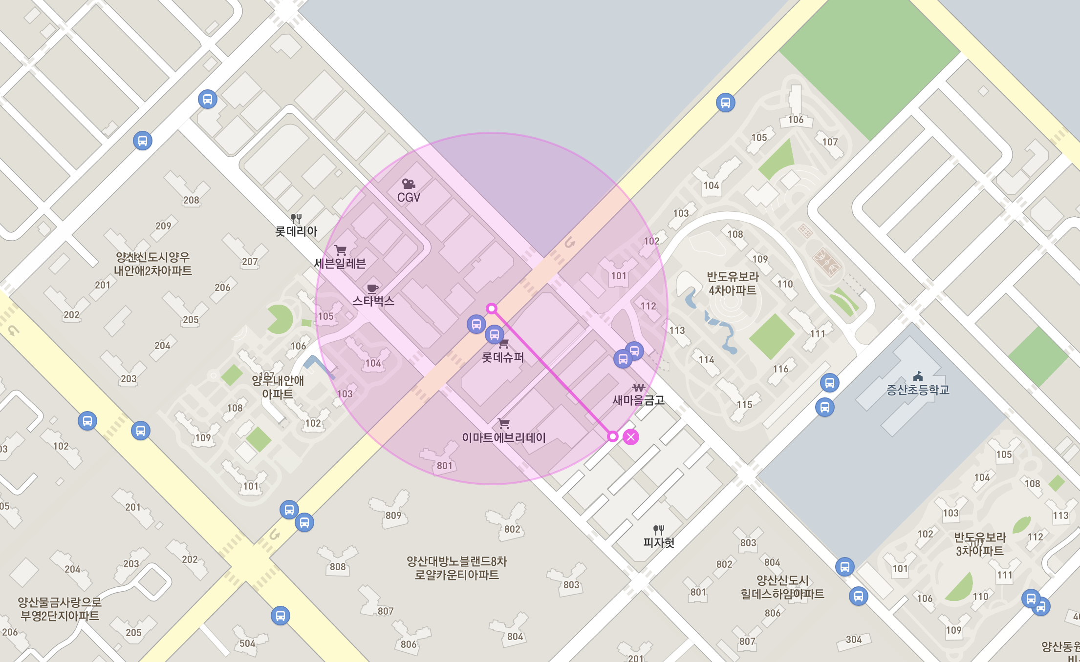 해당 지역은 증산에서 가장 인기있는 반도유보라4차와 양우내안애 그리고 가장 최근 입주하여