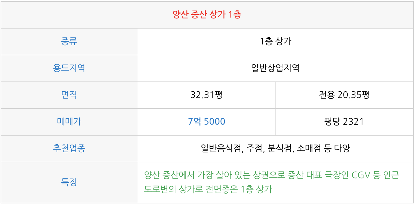 양산 증산 상가에 관심이 있으신 분들은