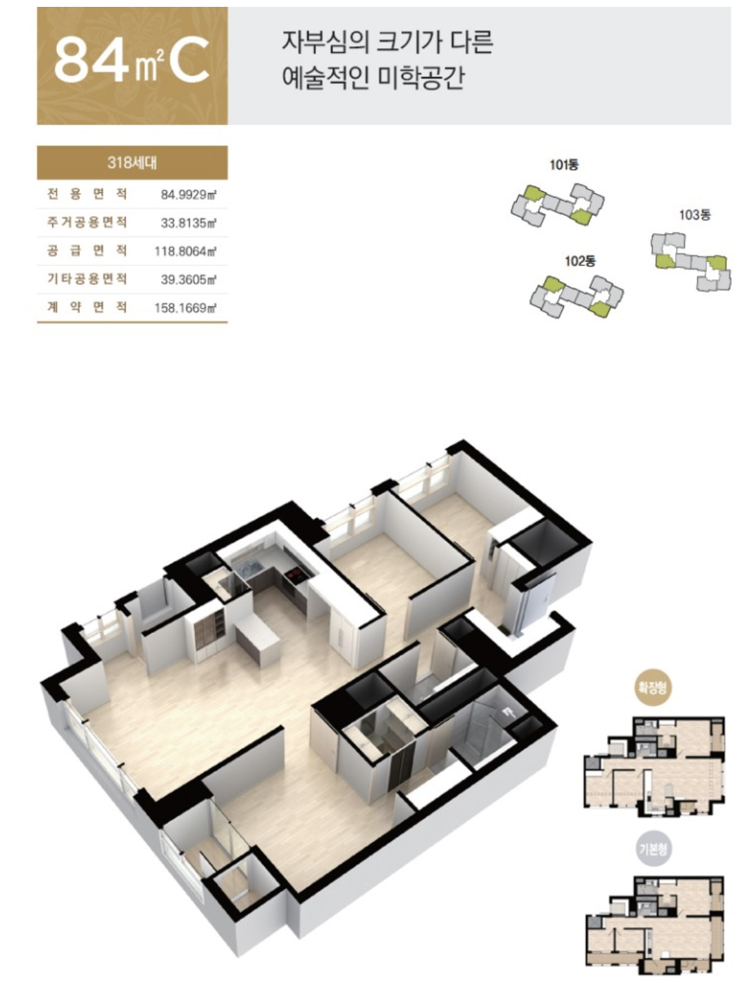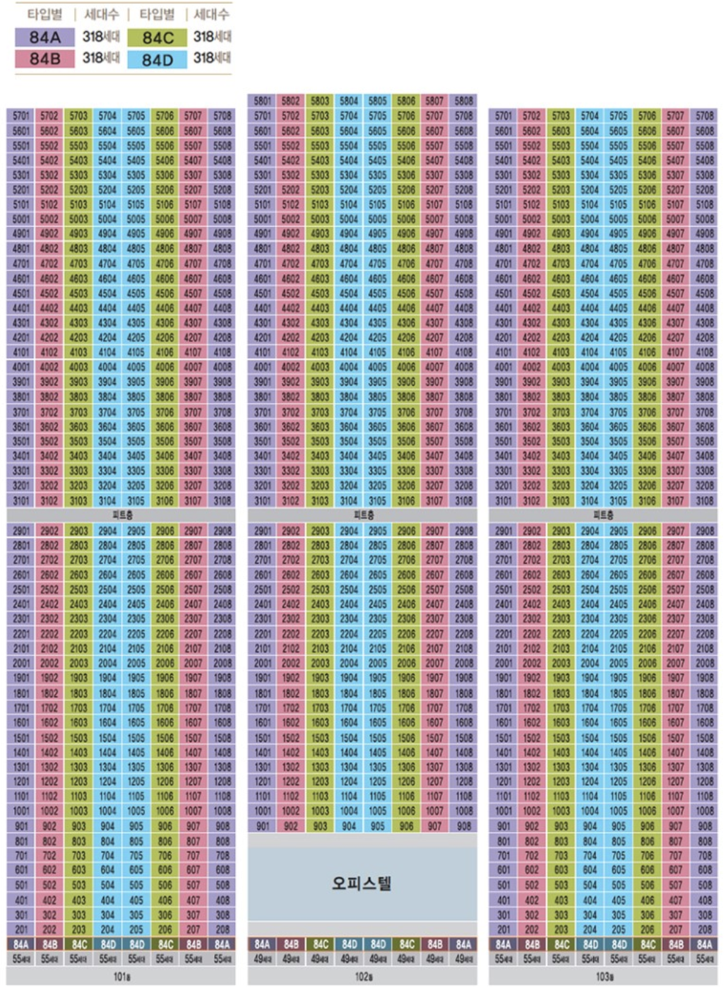 84A , 84B, 84C, 84D(판상형) 각각 318세대 |