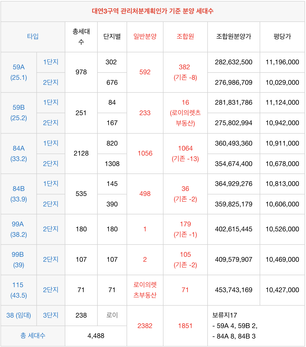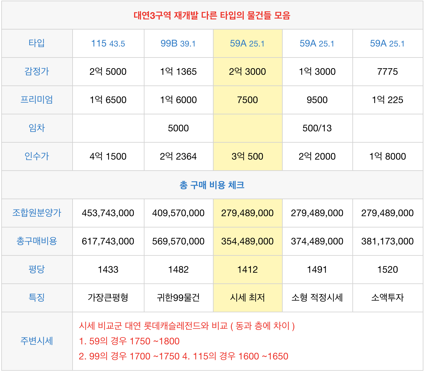 대연3구역 재개발의 다른 타입의 물건도 같이 소개 드립니다.