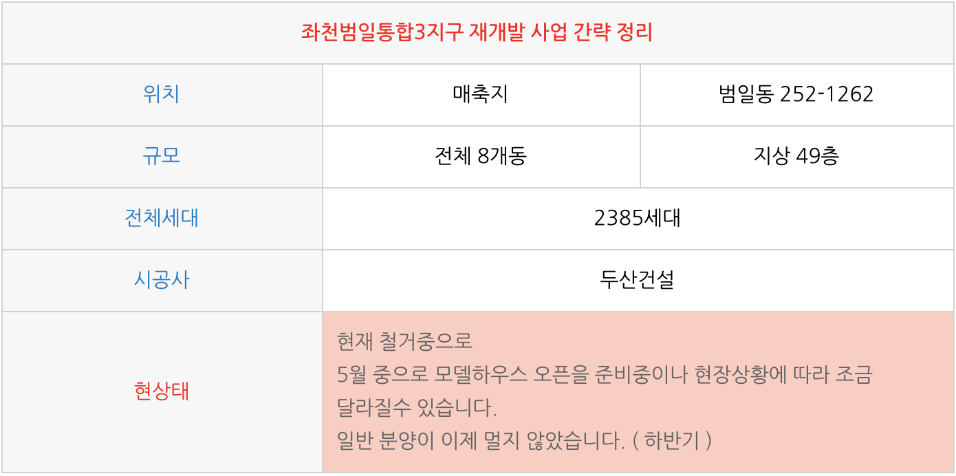 좌천범일통합3지구 재개발의 추가적인 설명과 물건 관련은 아래 페이지를 참조하여 주십시오