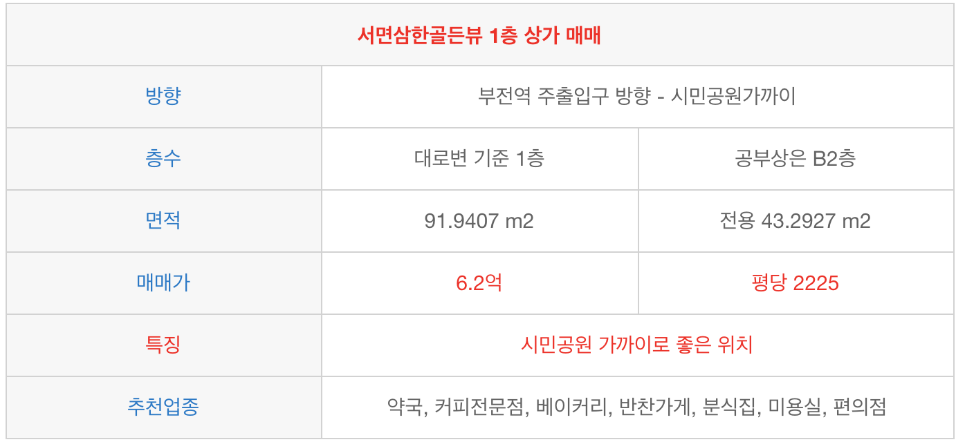 서면삼한골든뷰 다른 상가물건 안내 -> https://blog.naver.com/nackyeop/221514016491