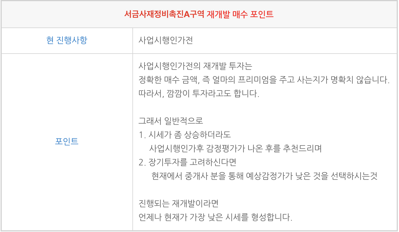 서금사 재정비 촉진A구역 재개발 매수시고려사항