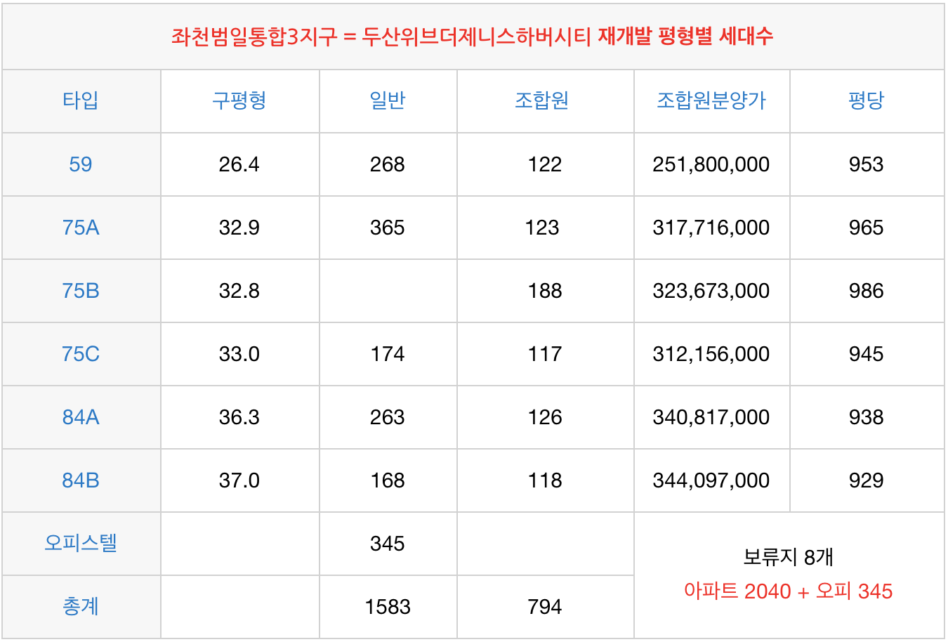 좌천범일통합3지구 = 두산위브더제니스하버시티 재개발 타입별 물건 |