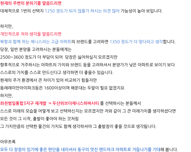 좌천범일통합3지구 재개발 = 두산위브더제니스하버시티 의 문의 사항들을