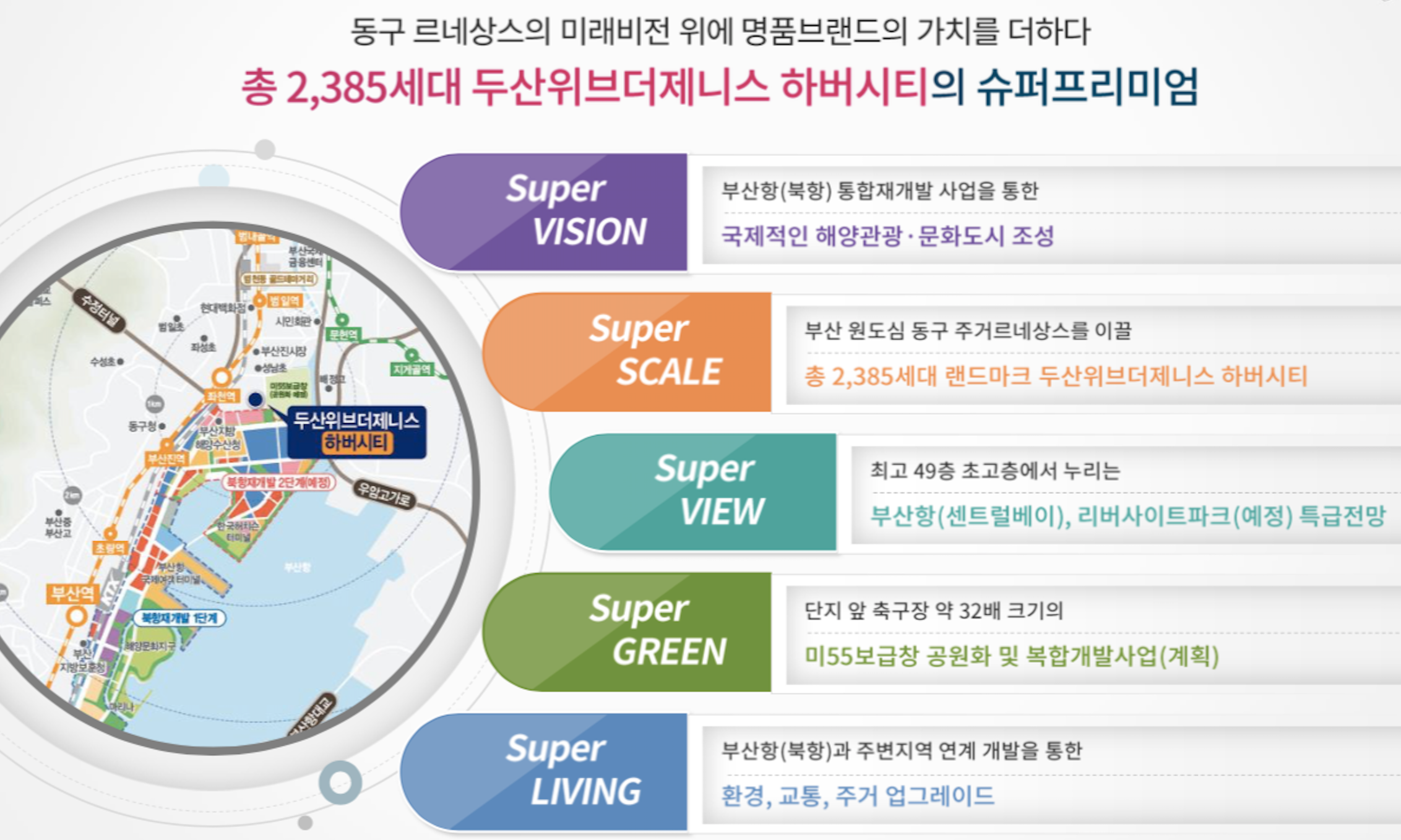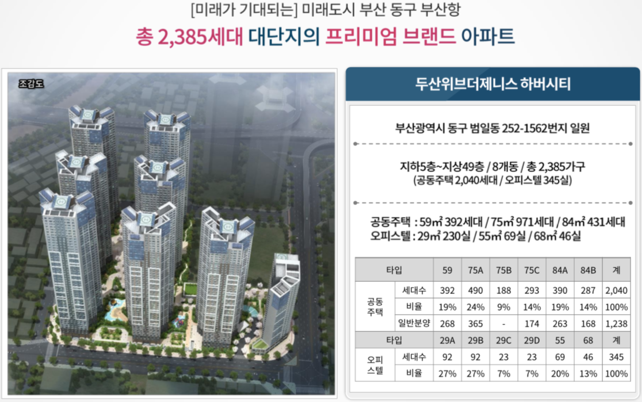 좌천범일통합3지구 재개발 = 두산위브더제니스하버시티 의 사업 상세와 세대수, 특징들은 아래 페이지를 보시면 될 것 같습니다.