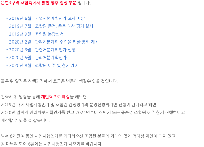 금번 5월 5일에 진행된 조합원 총회를 통해서향후 일정을 공유를 해주셨습니다.
