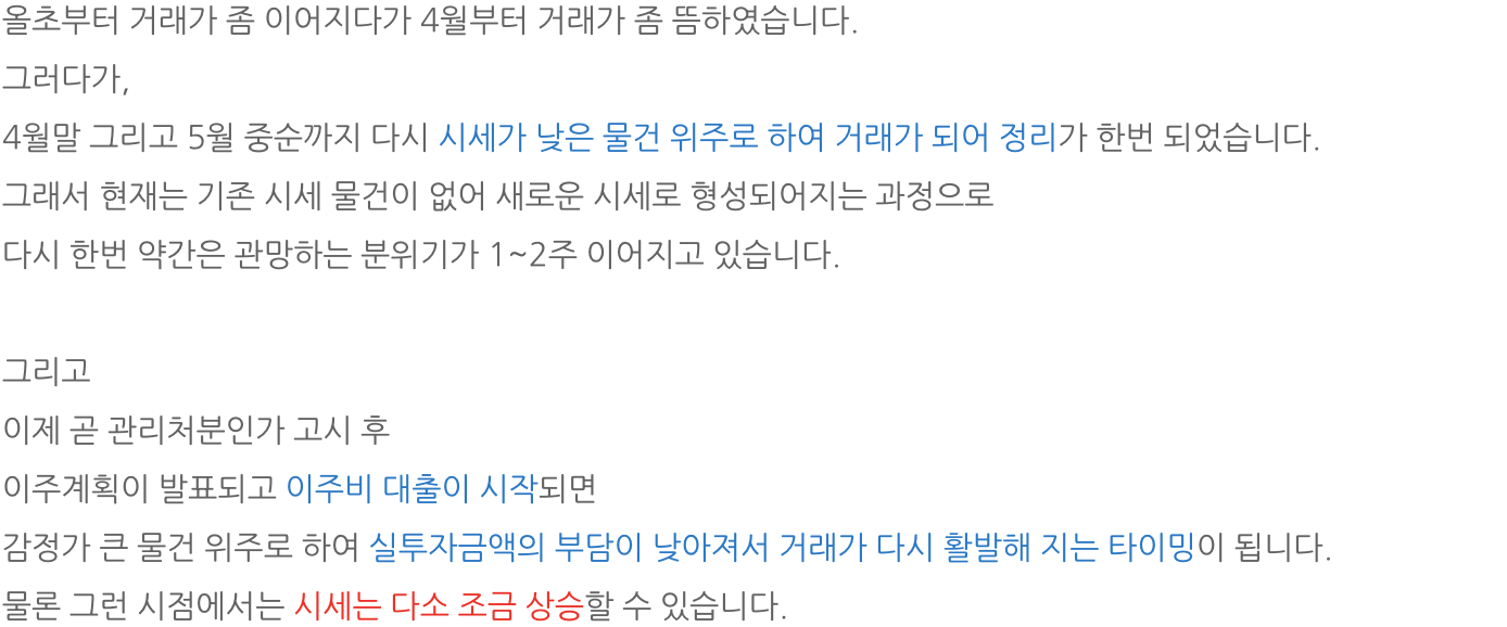 - 8월이나 늦어도 9월까지니 이주계획이 발표가 되고 이주가 시작될 것으로 예상됩니다.