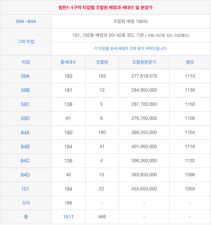 5. 범천1-1구역 현재 매수가능한 물건들을 타입별로 1개씩 소개해 드립니다