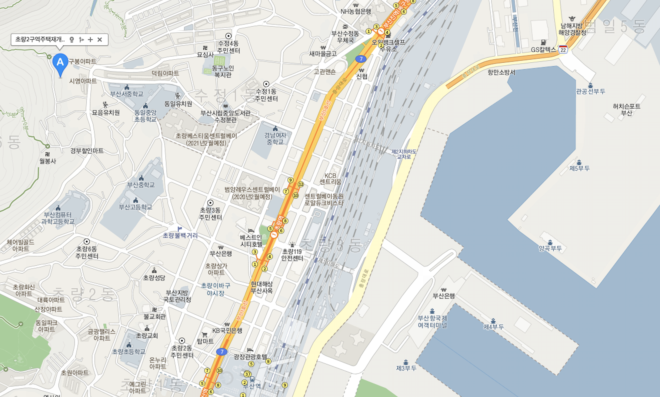 향후 부산의 미래의 모습이 될 북항 재개발을 한눈에 보실수 있는 곳이 바로 초량2구역입니다.