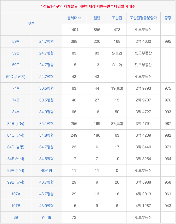 전포1-1구역 재개발 = 이편한세상 시민공원 타입별 물건 |