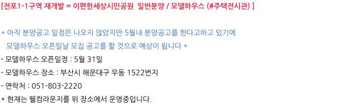 | 해운대 우동3구역 재개발 사업 & 가격착한 물건 (0) | 2019.05.23 |