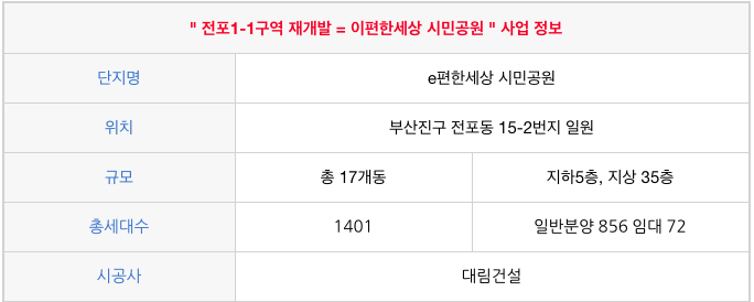 전포1-1구역 재개발 = 이편한세상 시민공원 은