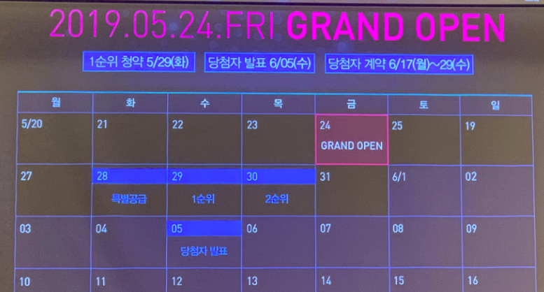 모델하우스 오픈과 모집공고는 어제인 5월 24일 발표 되었습니다.