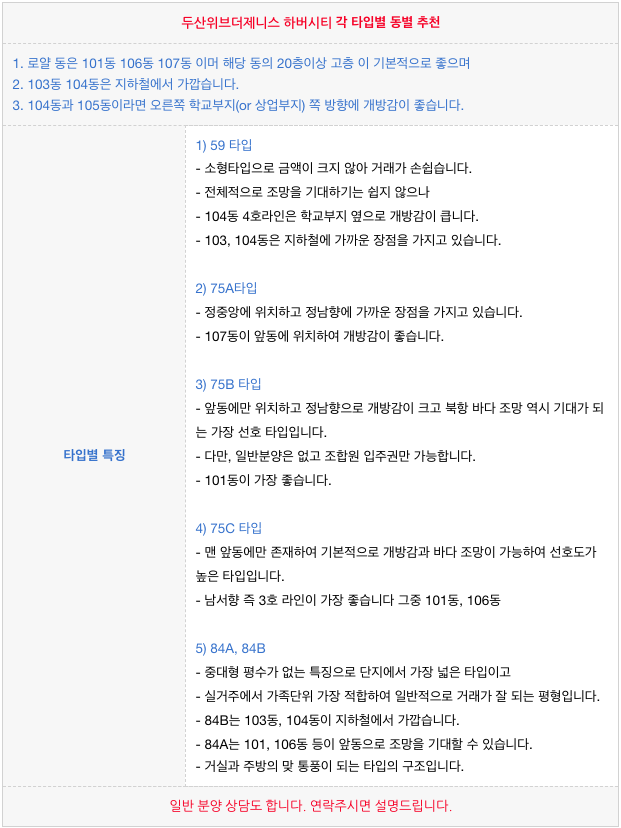 두산위브더제니스하버시티 일반분양 및 추천타입