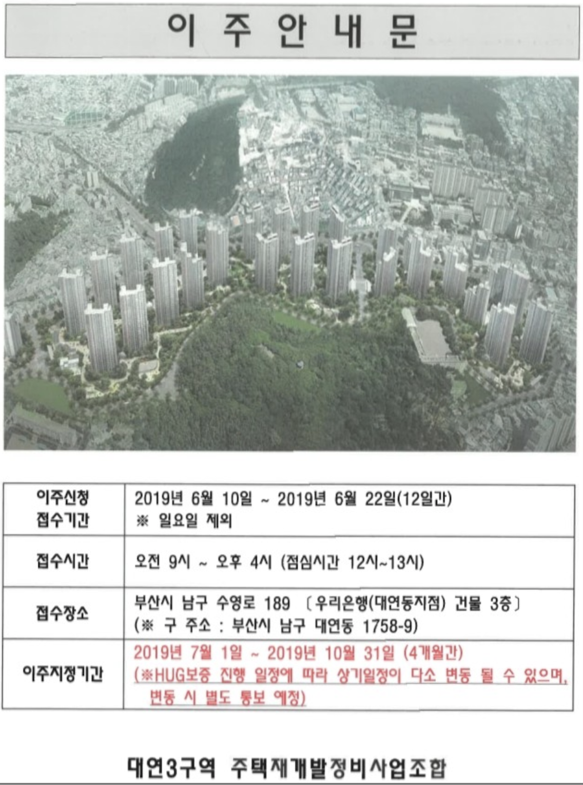 대연동재개발 대연3구역 이주계획/이주비 등 안내
