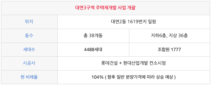 대연3구역 재개발의 개괄적인 사업 내용과 좋은 물건도 소개해 드립니다.