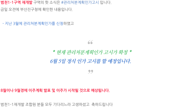 범천1-1구역 재개발 차주 관리처분인가고시 및 조합원물건