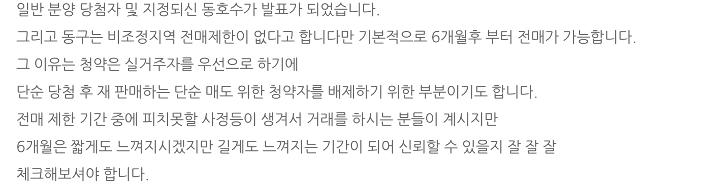 실거주를 생각하고 계시던, 전매를 생각하고 계시던 계약을 하셔야 합니다.