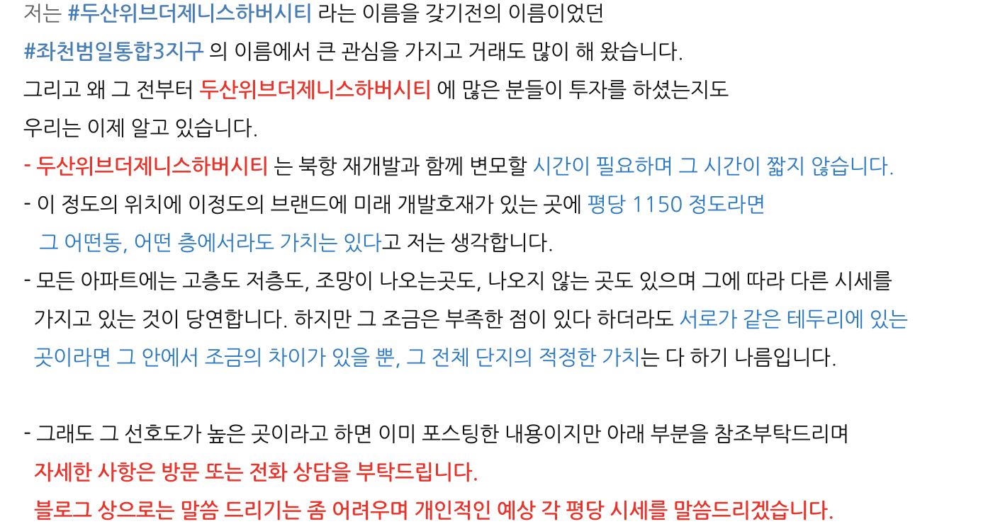 제가 두산위브더제니스하버시티 를 항상 말씀드릴때