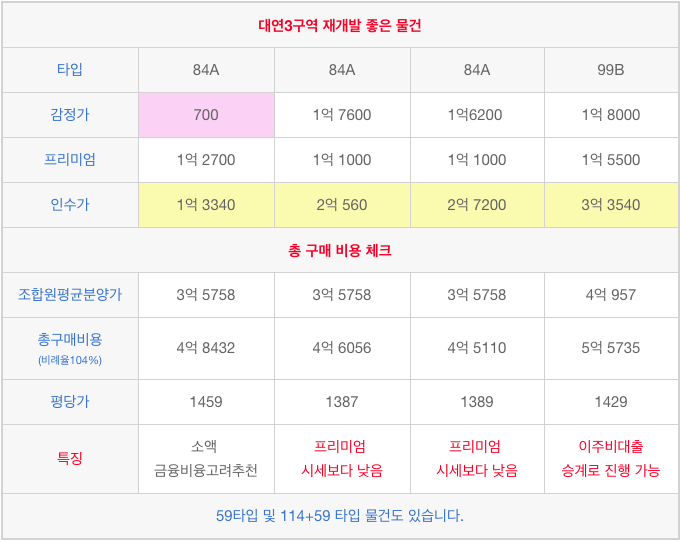 대연3구역 재개발 84A 최저 P 물건 소개해 드립니다.
