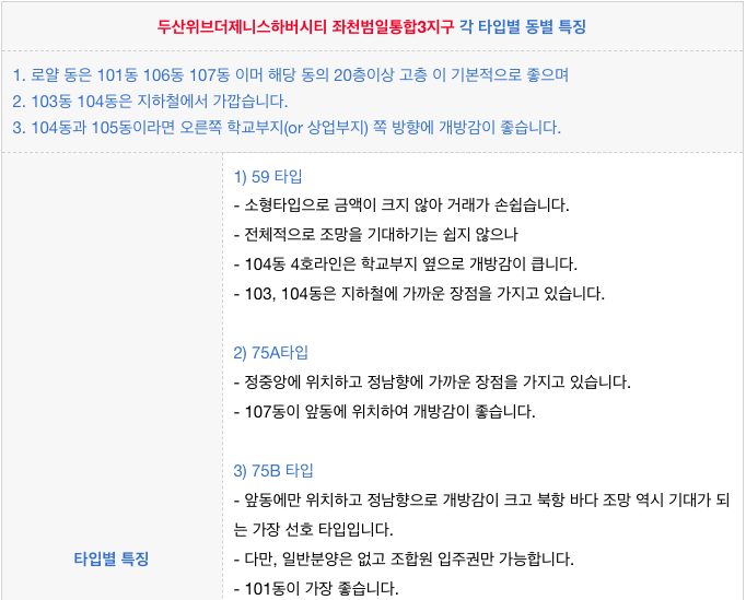 두산위브더제니스하버시티 좌천범일통합3지구 조합원 물건 중 조망이 기대되는 물건들 위주로