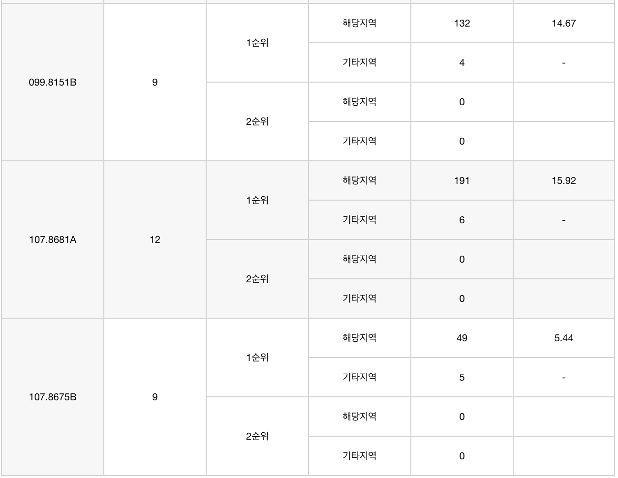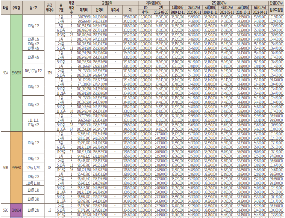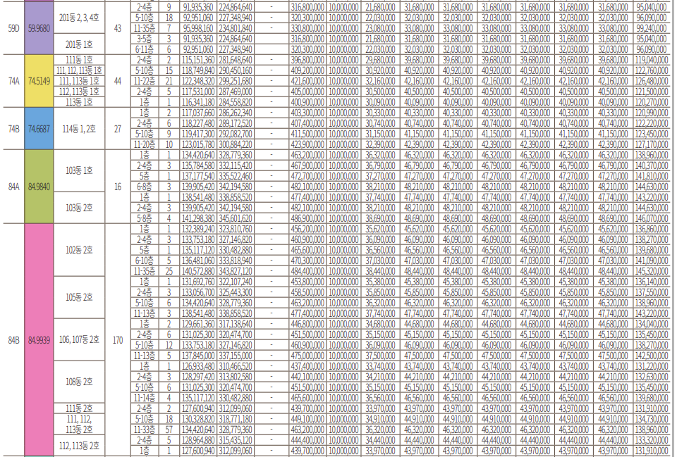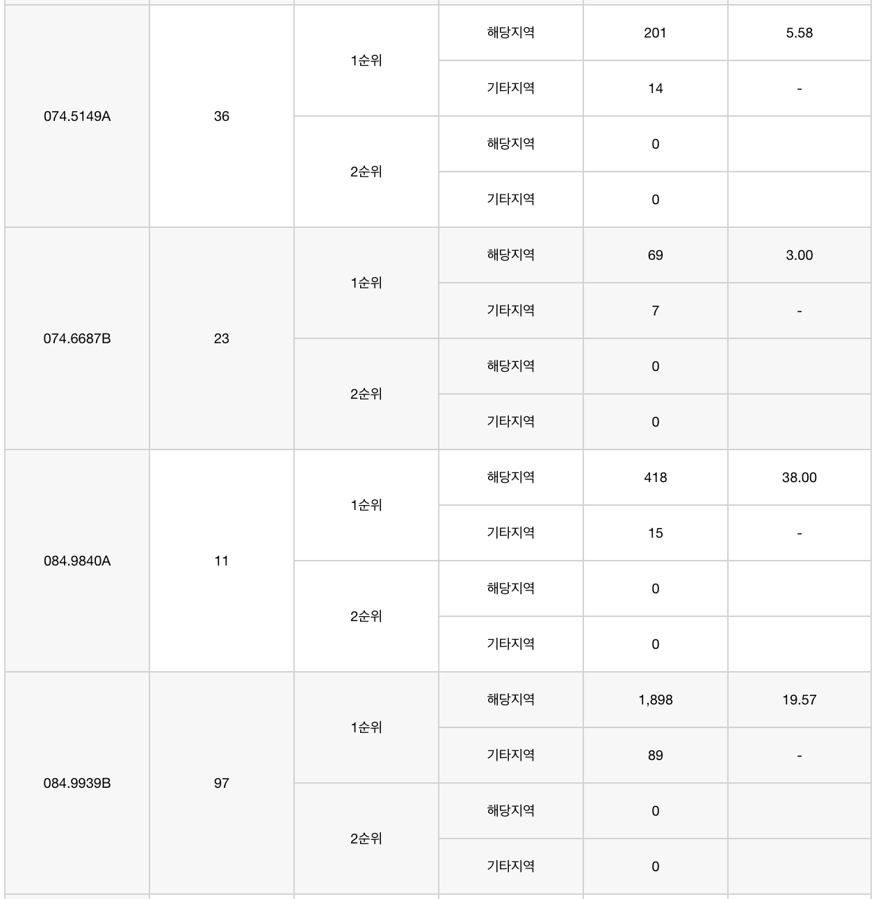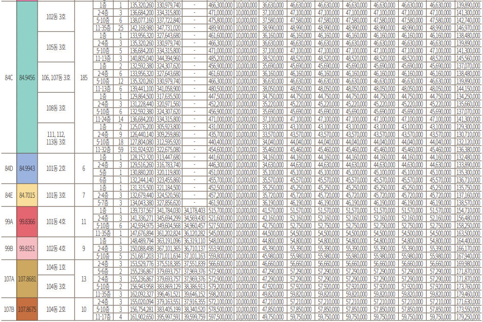 * 전타입, 특히 84, 99, 107 타입은 전부가 다 높은 경쟁률을 기록하였습니다.