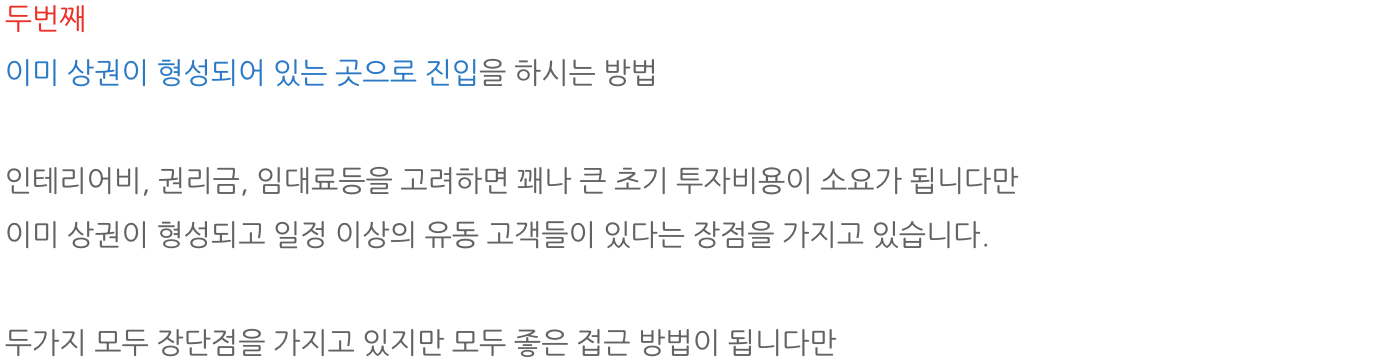 - 두개 모두 내부 인테리어가 잘 되어 있어서 추가 비용없이 그대로 승계받아 영업하실수 있습니다