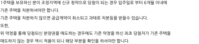 3. 조정지역 1주택자 청약시 체크사항 및 전매 받을시 체크사항