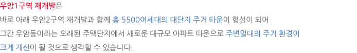 우암1구역 재개발의 특징 입니다.