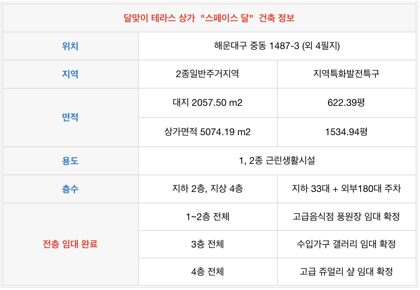 달맞이 테라스 상가 " 스페이스달 " 의 분양 수익율과 평당가 그리고 보증금 / 월세 정보 간략히 드립니다.