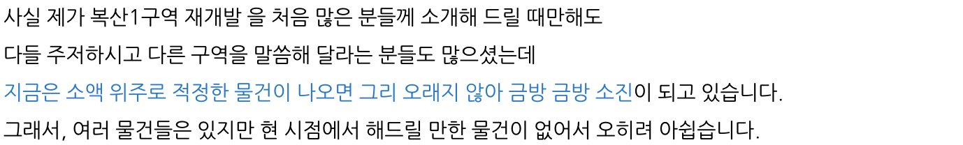 복산1구역 재개발에 관심이 있으신 분들은 연락주시면 자세히 설명 드리겠습니다.