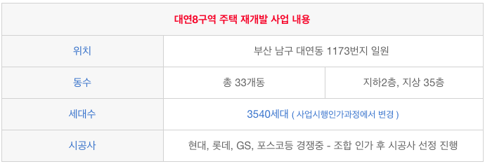 대연8구역 재개발의 특징을 간략히 체크해 보겠습니다.