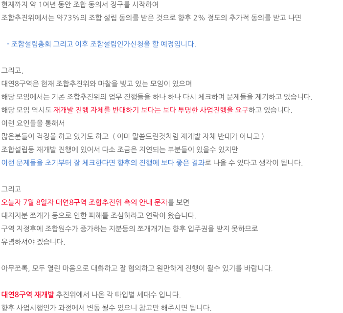 대연8구역 재개발은 조합추진위에서 조합원분들께서 참조하시라고