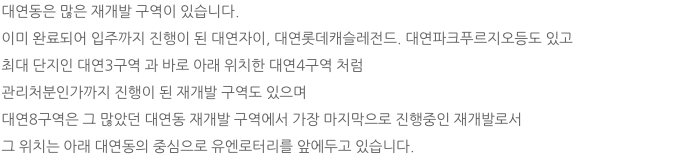 대연8구역 재개발 에 관심이 있으신 분들은 연락주시면 자세히 설명드리겠습니다.