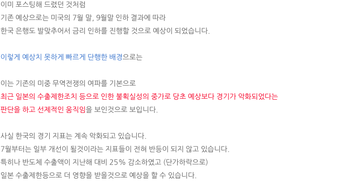 금리인하와 하반기 경기 동향에대해서는 제가 얼마전 포스팅한 아래 글을 참조 부탁드립니다.