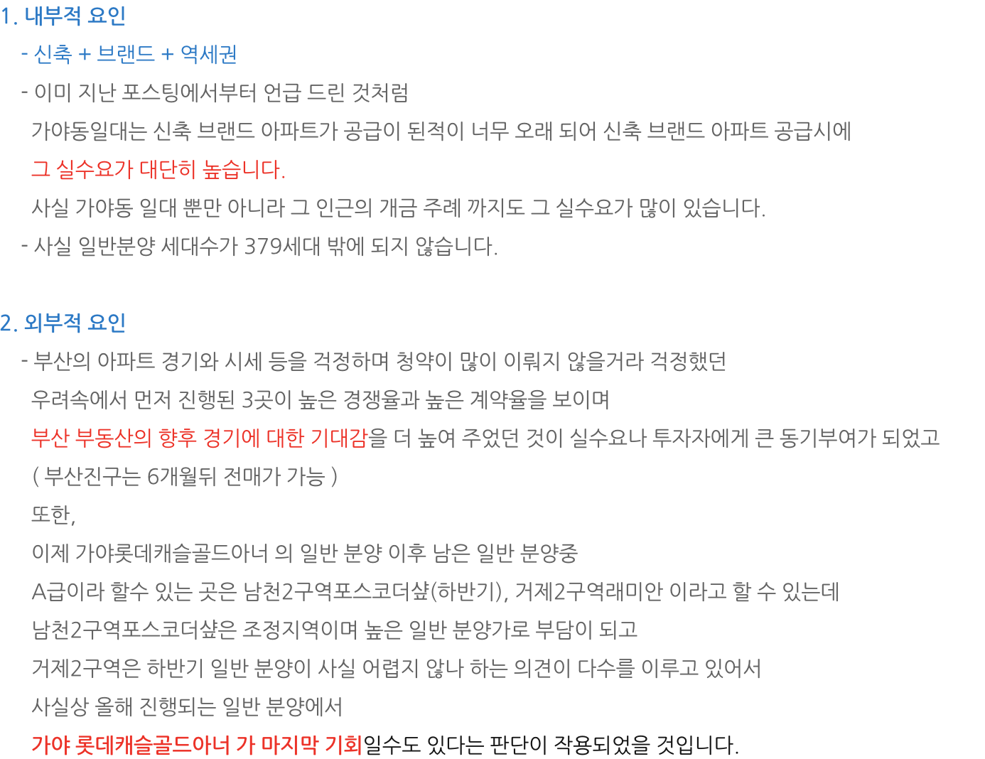 가야3구역의 결과물인 가야 롯데캐슬골드아너 의 좋은 반응으로