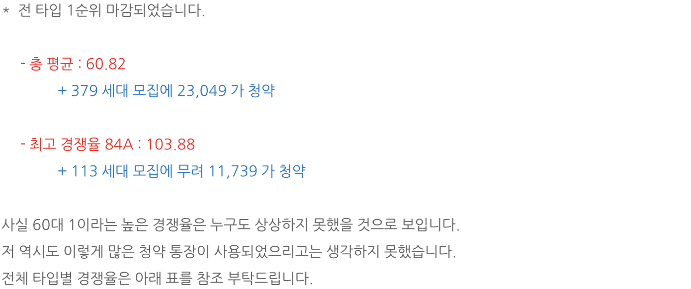 특별공급에서 높은 경쟁율을 기록하여 오늘 일반분양 1순위 청약 경쟁율이 마감이 문제가 아니라