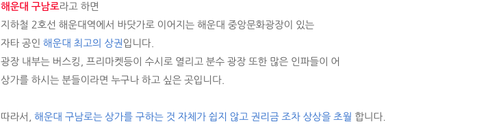 (부산최고상권) 해운대 구남로 상가 매매 / 임대 물건 소개