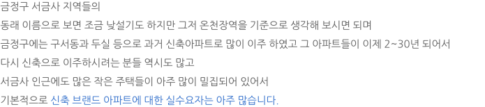 금정구의 재개발에서 가장 관심을 받고 있는 #서금사촉진A구역 #재개발 물건을 소개해 드리겠습니다.