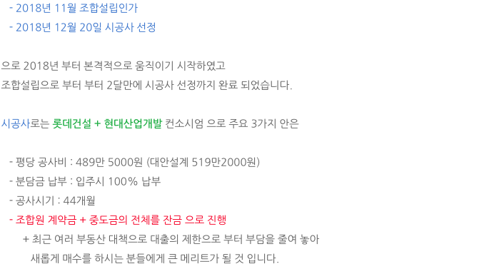 조합원 계약금 + 중도금의 전체를 잔금 으로 진행