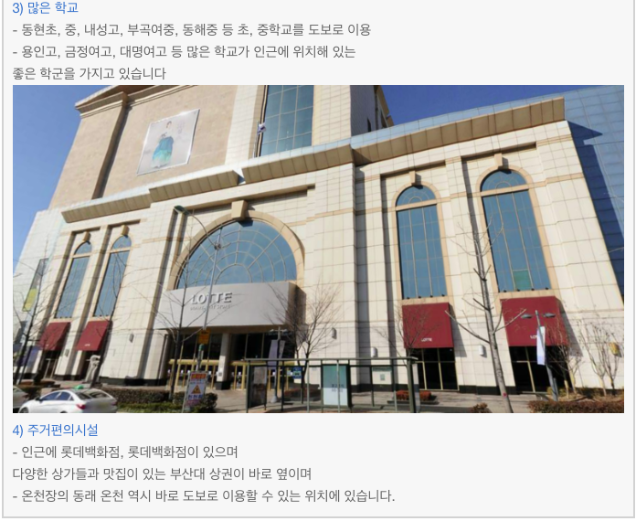 - 온천장역의 바로 옆 초 역세권 지역이며 평지에 위치