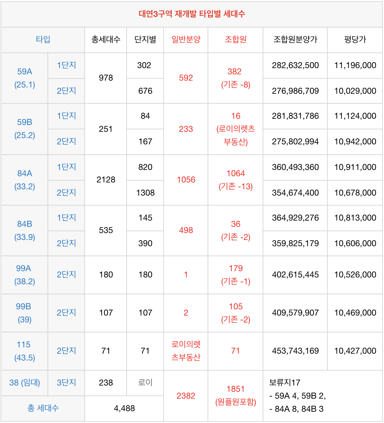 대연3구역 주택 재개발 조망 기대 되는 99A 타입