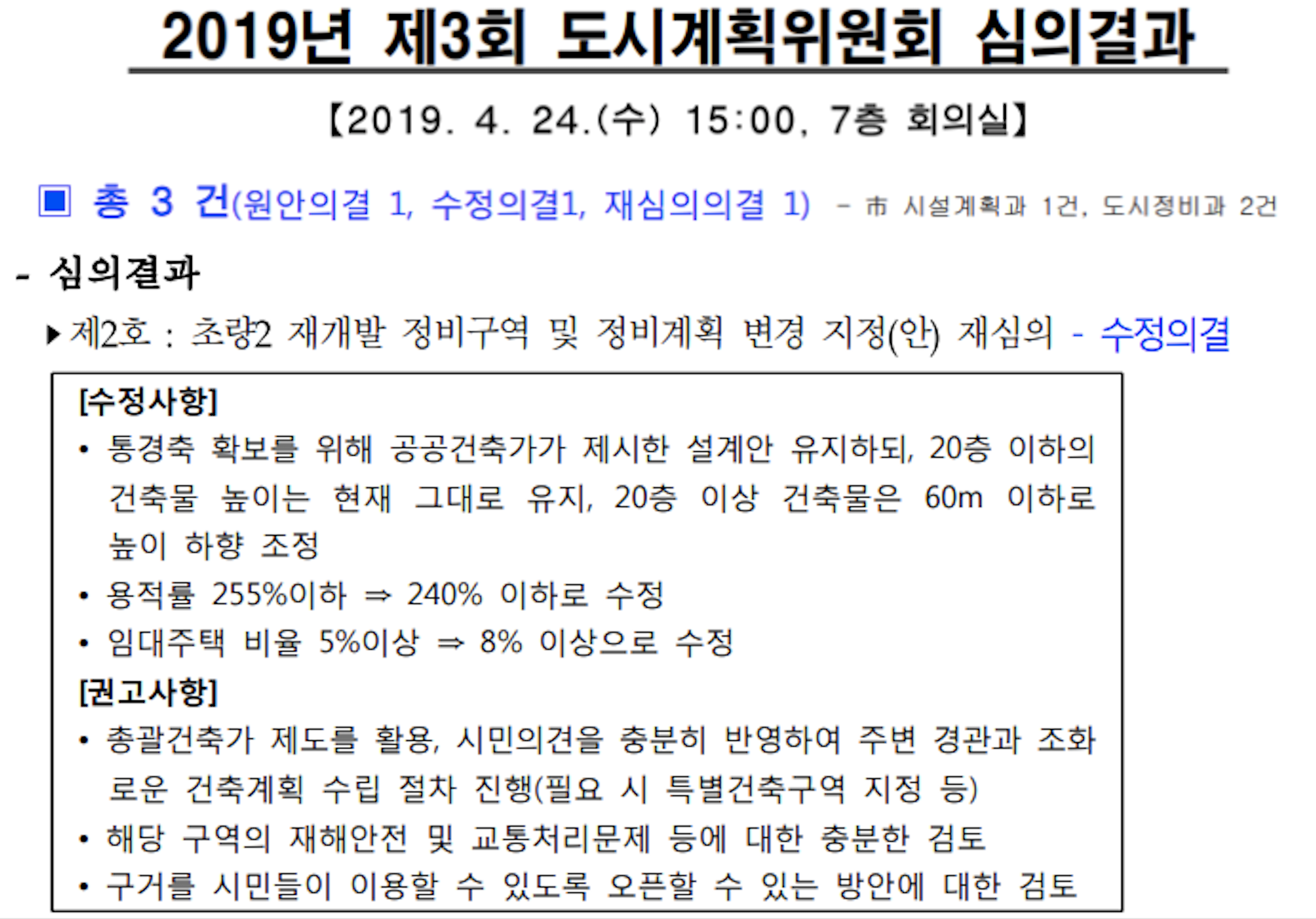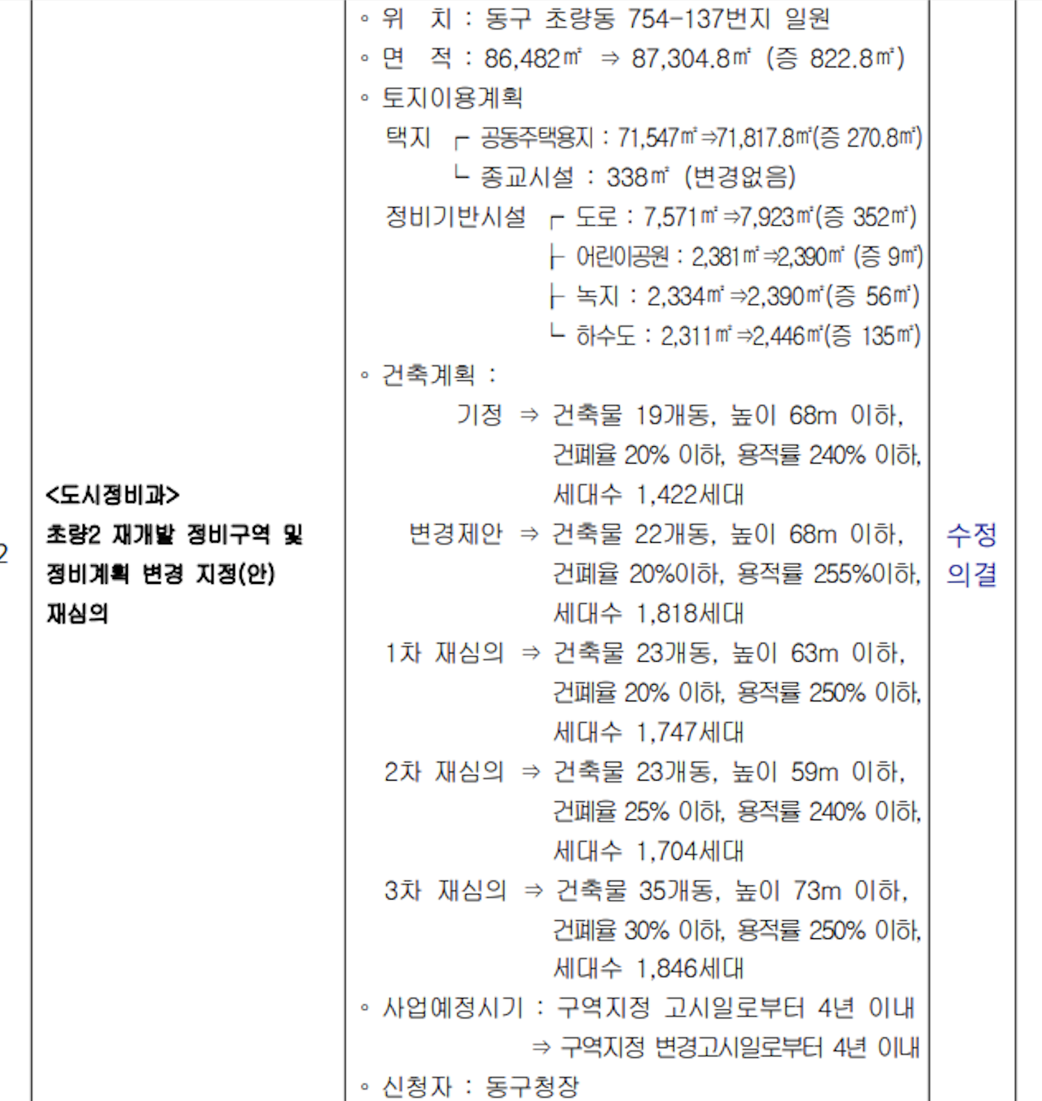 3차례나 도시계획심의에서 반려가 되며 그 진행이 일시적으로 멈춰야만 했습니다.